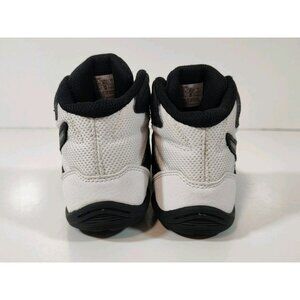 The Asics Matflex 6 Wrestling Shoes in Youth Size 1 are designed for young athletes engaging in wrestling or boxing. With a sleek black, silver, and white color scheme, these shoes offer style and performance. Made by ASICS, a reputable brand known for quality athletic footwear, these wrestling shoes are crafted in Vietnam to ensure durability and comfort. Perfect for young athletes looking to enhance their performance on the mat, these shoes provide the necessary support and grip for wrestling and boxing activities.