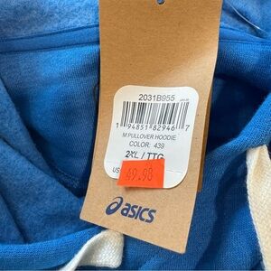 Experience comfort with the Asics pullover hoodie. Ideal for casual wear or workouts. Features a striking blue color and a cozy fit.