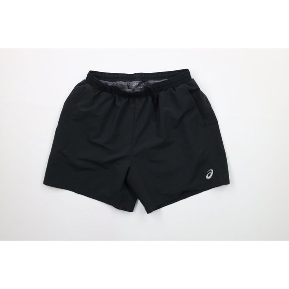Asics Mens Medium Reflective Logo Lined Jogging Running Shorts Black Polyester