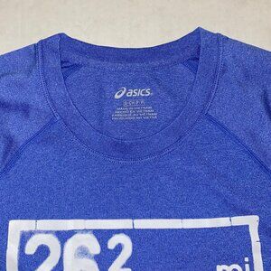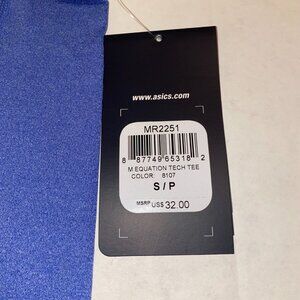 Asics Men's Blue Equation Tech Tee Shirt MR2251-8107 Size Small NWT. 48% Nylon, 48% Polyester, 4% Elastane. **Graphic didn't print 100% correctly.