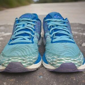 The Asics Nimbus 18 running cross training shoes for women are designed in an eye-catching aqua blue and purple color combination. These athletic shoes feature a medium width and are suitable for activities like running and cross training. With a synthetic upper material and medium width, these Asics shoes offer both style and performance for women in US shoe size 9. Perfect for various athletic endeavors, these shoes provide comfort and support for active individuals.