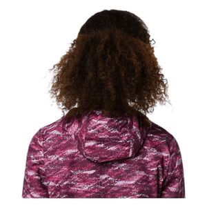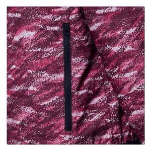 Asics Packable Windbreaker Jacket in Purple Deep Mars Print. This packable jacket is a lightweight garment designed for various workouts and warm-ups. Designed to keep you dry and focused, this jacket is functional for wearing as an added layer on colder days. It features a technical woven material that's water-resistant and quick-drying. It also offers a packable functionality that easily packs into its own pocket.