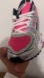 Dynamic pink and silver design with black accents. Perfect for running or casual wear.