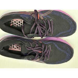 Great Asics Gel running shoe gently used in size Euro 44.5, Men’s US 11, UK 10 colors black, navy, purple. Great shoe! Comparable to Men's size 10-1/2 US.