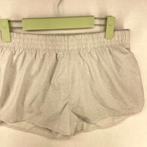 women's running shorts, athletic shorts with lining, breathable workout shorts, comfortable running wear, size M women's shorts, lightweight shorts, performance athletic wear, white and gray shorts, moisture-wicking shorts, stylish workout gear, casual athletic fashion, flexible fabric, ladies sportswear, quick-dry shorts, gym wear for women, soft running shorts, supportive inner lining, active lifestyle shorts, women's fitness fashion.