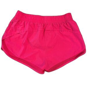 Asics bright pink running shorts with inner lining. Excellent condition with no signs of wear. Has a zipper pocket. Size large. 30" elastic waist/12" long.
