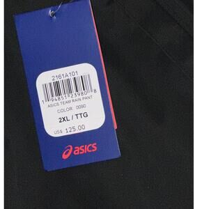 Crafted by the renowned brand ASICS, these men's team rain pants in black are designed for those who seek both function and style. The 2XL size ensures a comfortable fit, while the sleek black color adds a touch of sophistication to any athletic ensemble. Ideal for outdoor activities, these pants provide reliable protection against rain while maintaining breathable comfort.