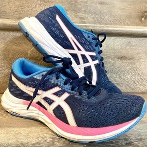Asics Women Gel-Excite 7 Running Shoes Amplifoam LaceUp Blue/White/Pink 1012A875
