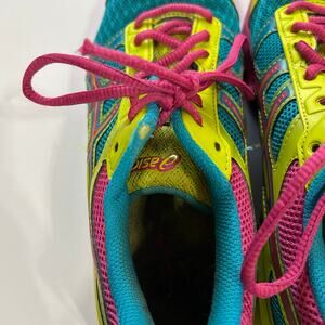 Asics Womens 8.5 Gel Frantic 7 Pink, Blue & Green Neon Running Sneakers Athletic