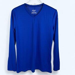 Asics Womens Long Sleeve Athletic Pullover Shirt size Large V Neck Bright Blue