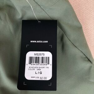 Asics Woven Green Running Shorts - 7”, Built-In Briefs Mens Size L