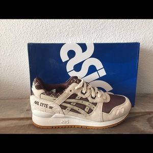 These are brand new asic-gel lyte 3, size 7.5! Color is sand and dark brown!