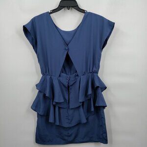 Ask Grace Round Neck Ruffle Flutter Sleeve Open Back Mini Dress 12 Women Blue