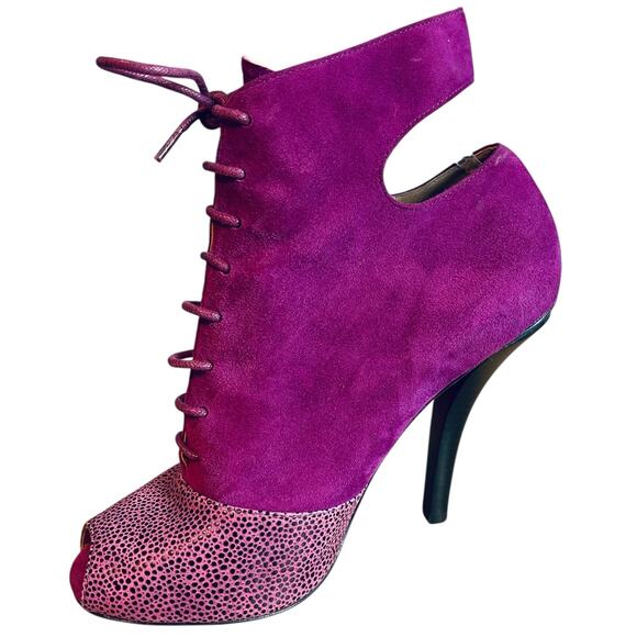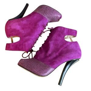 Askalice Peep Toe Lace Up Bootie Fuchsia Pink High Heel Size 9/40-Excellent pre-loved Condition