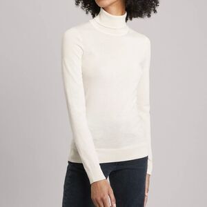 Asket The Merino Turtleneck in Off White Cream in 100% Extra Fine Merino Wool XS