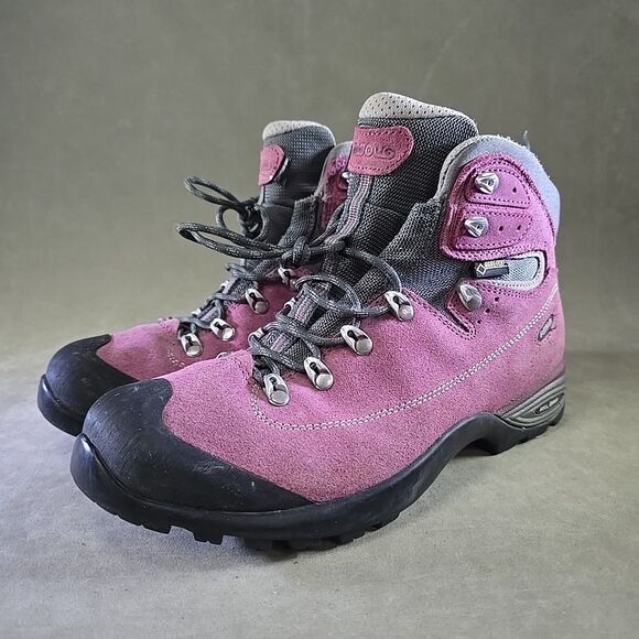 Asolo Tacoma GV Boots Womens Size 8 Pink Suede Gore Tex Vibram Hiking Anti Shock