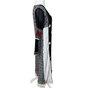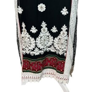Asopalav Indian Salwar Kameez Black Red White XL Embroidered Lace Sheer Sleeves