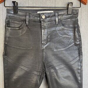 Asos Black Coated Stretch Denim Emo Y2K Festival Rocker Flare Leg Jeans Size