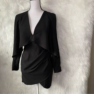 Asos Black Mini Wrap Skirt Cape Dress Size 0