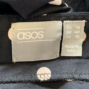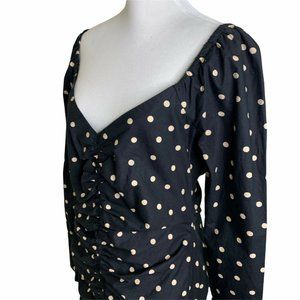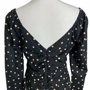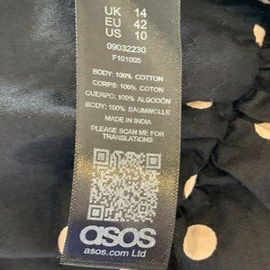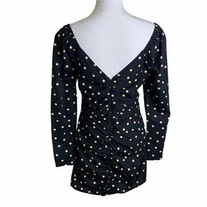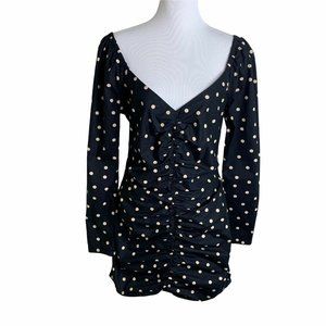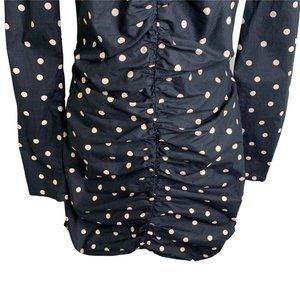 Asos Black Polka Dot Print Cotton Ruched Off The Shoulder Mini Dress Womens 10