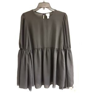 🩷Asos Blouse, Women's Size 8 Black, Long Bell Sleeves, Pleated, Sheer, EUC