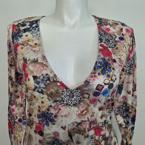 Asos Curve Jewel Flower Print V-Neck Coquette Bodycon Cottagecore Midi Dress 16