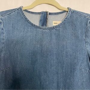 Asos Denim Boxy Boho Split Bell Sleeve Frayed Edge Top