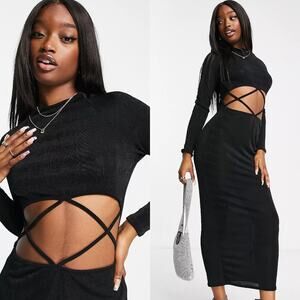 Asos Design Black Cutout Long Sleeve Maxi Dress Size 4. Excellent condition, like new. Solid black. High neck. Bodycon material.