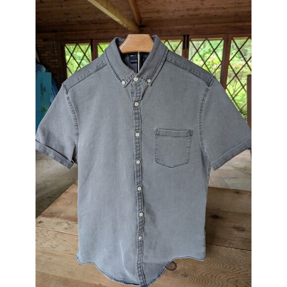 Asos Design Button Down Shirt Mens Large Gray Chambray Short Cuff Sleeve Casual