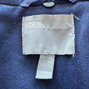 Asos Design Coat Navy Blue Women Longline Pea Coat Size 14