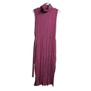 Asos Design Column Ribbed Sleeveless Turtleneck Maxi Dress Burgundy 10