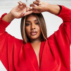 Plus-size dress by ASOS DESIGN Love at first scroll Plunge neck Batwing sleeves Tie back Regular fit