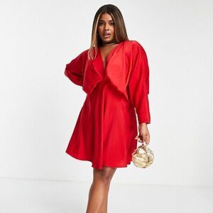 Asos Design Curve Batwing Satin Mini Dress Bias Cut Skirt Tie Back Red SZ 18