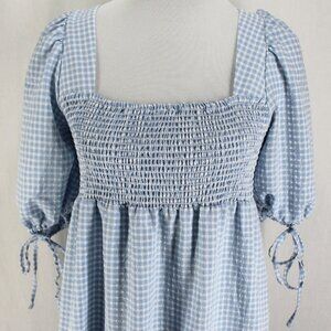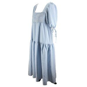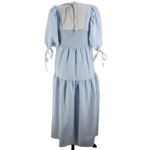 Asos Design Gingham Midi Dress Womens Size 4 Bue White Check Square Neck Smocked