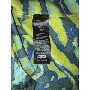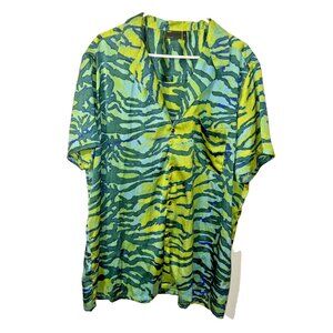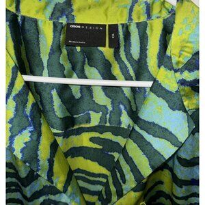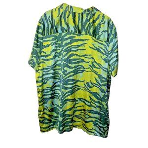 Asos Design Mens Satin Green Zebra Stripe Short Sleeve Button Up Size 2XL