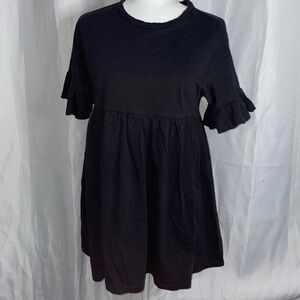 Asos Design Mini Dress Slubby Frill Short Sleeve Smock Pleated A-Line Shift