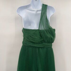 Stunning ASOS green one-shoulder pleated midi dress. Features soft mesh overlay, elegant pleating all around, a flowy hemline, and asymmetric shoulder with one thin strap. Beautiful, feminine, and perfect for weddings, formals, parties, and special events.Shell: 100% Polyester