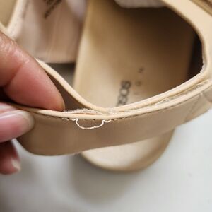 On the back strap of the right shoe, the threading is loose (see photo)