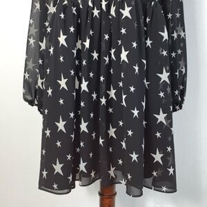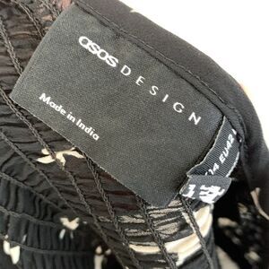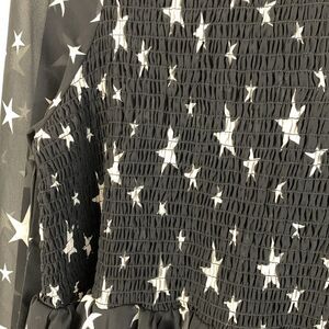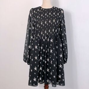 Asos Design Shirred Smocked Star Print Mini Dress Black & White Sz 10