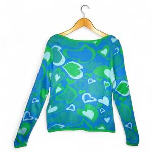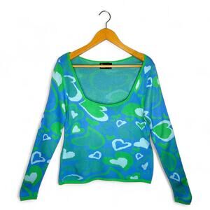 Asos Design Square Neck Knitted Top With Wavy Heart Pattern in Blue Green Size 6
