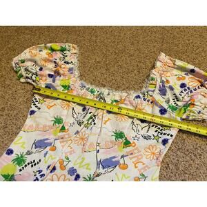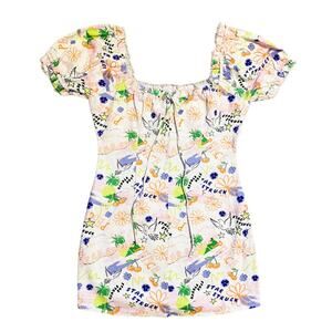 Asos Design Square Neck Twill Mini Dress in Bright Peace Print Puff Sleeve NWT