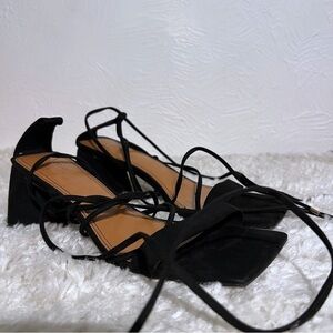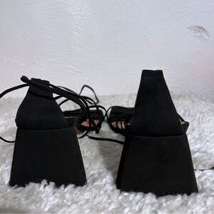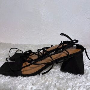 Asos Design Square tie leg block heeled Women’s Heels Sandals Shoes Black SZ US 9 LKNW