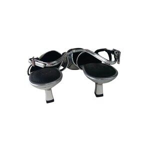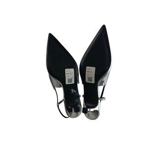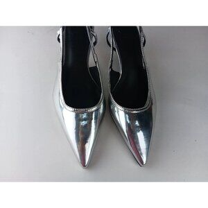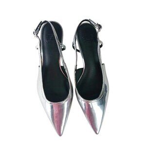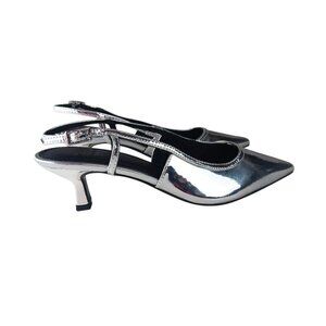 Asos Design Women's Wide Fit Stroll Slingback Kitten Heel Shoes in Silver size 5