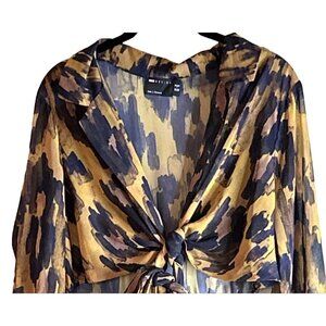 Asos Design Wrap Front Fluted Sleeve Jumpsuit Flowy Leopard Print