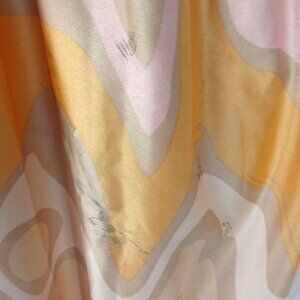 The Asos dress, beautiful pastel colors, satin gathered detail plunge neck midi dress in swirl print, back zip closure, unlined.