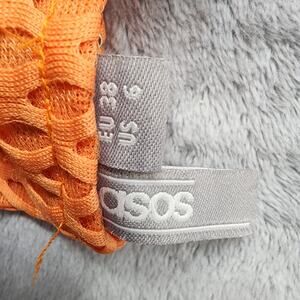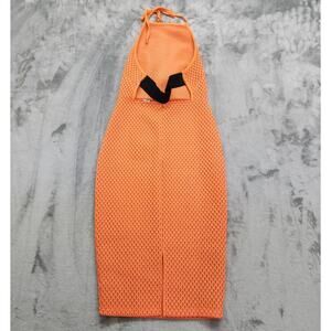 Asos Dress Size 6 Orange Black Bonded Mesh Scuba Midi Bodycon Stretch Backless Halter Back Slit Pull On Tie Neck Party Summer Clubwear