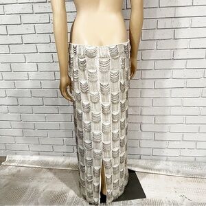 All-over embellishment. Draped design. High rise. Kick split. Zip-back fastening.