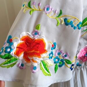 Pre-loved condition- Small pull at bottom and some loose threads in floral. See photos