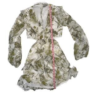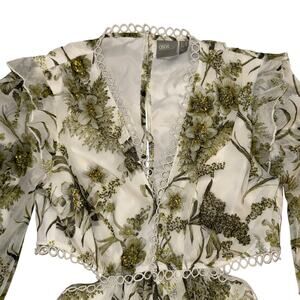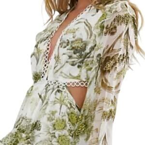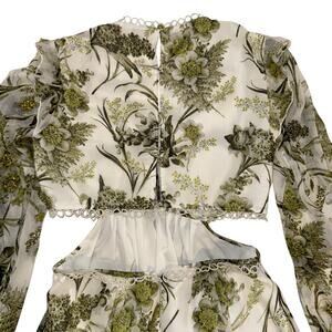 Asos Floral Cluster Embellished Long Sleeve Cut Out Ruffled Mini Dress Size 6