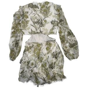 Stunning ASOS mini dress, perfect for your next special occasion! This dress features a beautiful floral cluster embellishment, long sleeves, a playful cut-out design, and charming ruffles. It's a size 6. This dress is guaranteed to turn heads and make you feel fabulous! Measurements in photos are for estimates only. Make sure of your size, Poshmark doesn't allow returns for fit.